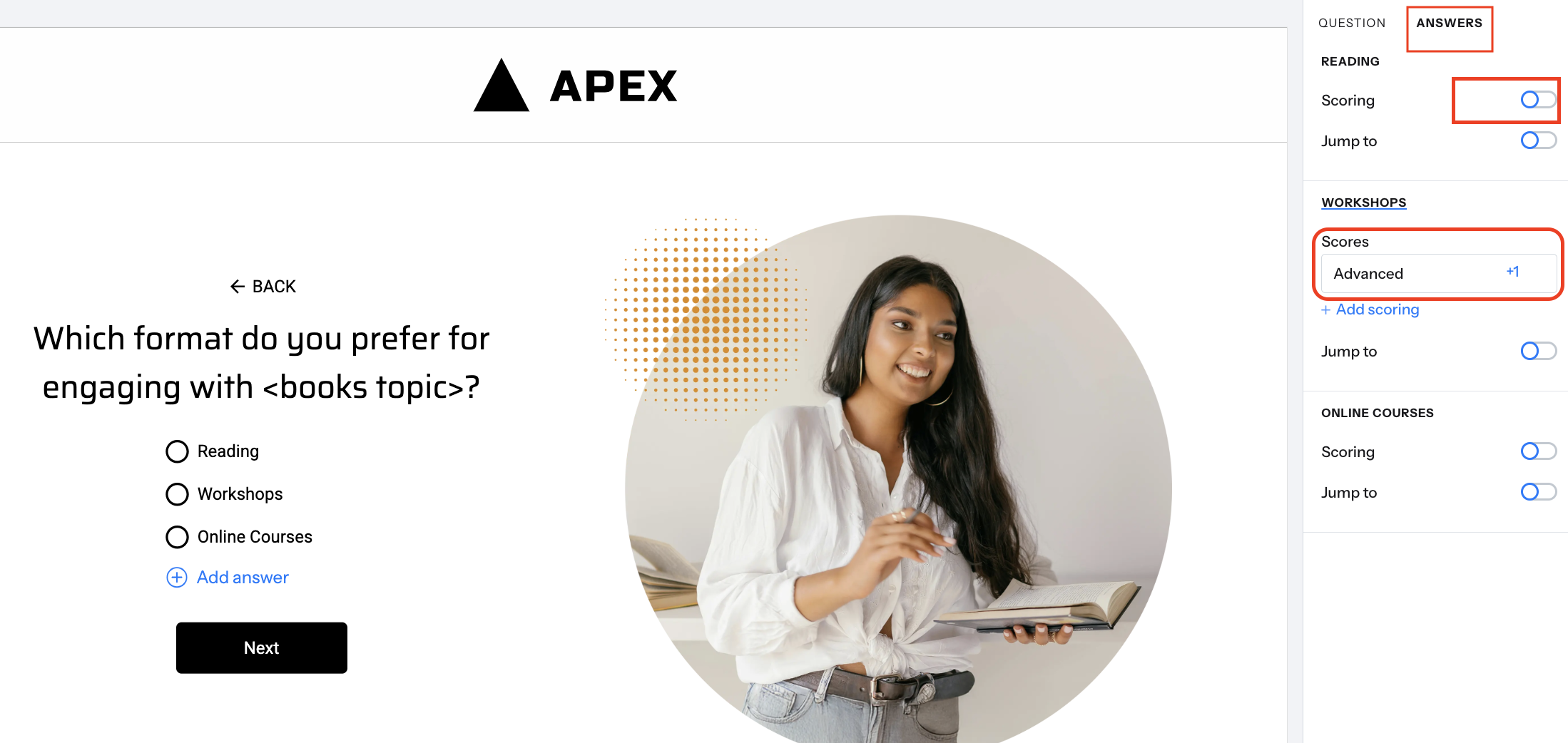 Assign a question to a category and add scoring
