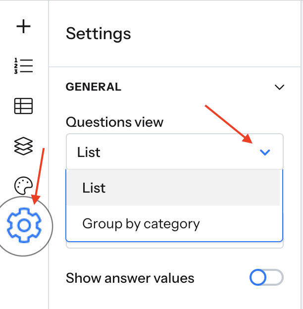 Group by Category: Displays questions grouped under the category they’re mapped to.