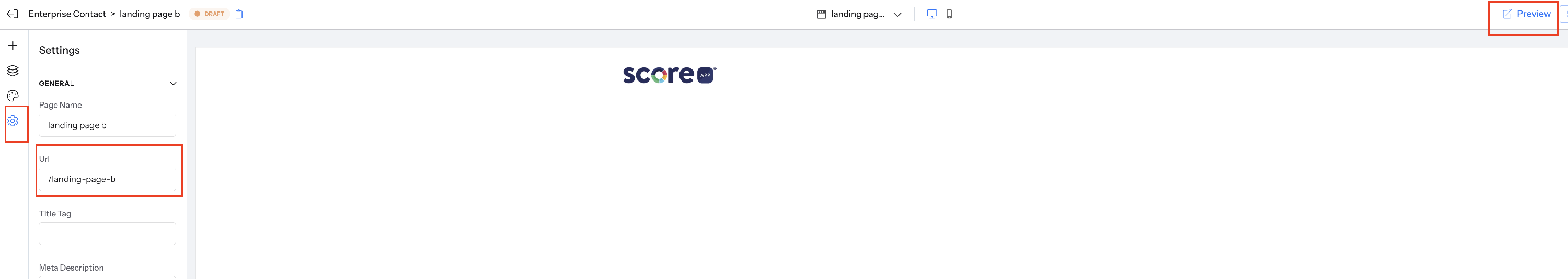 - You can preview the URL by clicking on the preview option in the top right corner of the landing page editor.