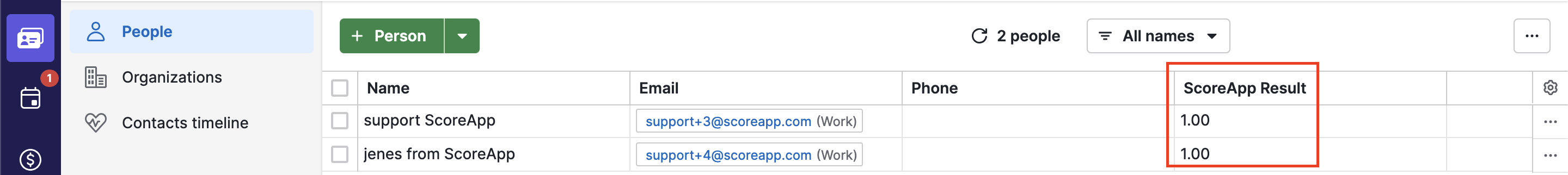 - If successful, you will see a confirmation message. You can also submit a test lead through your Scorecard and check the contact in Pipedrive to confirm that the mapped data appears correctly.