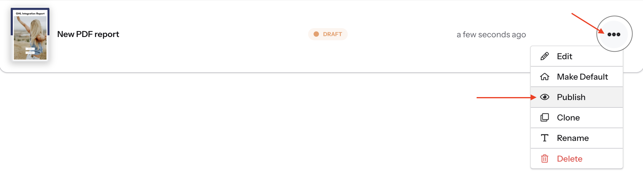 - If it says Published (green tag), the PDF is already active, and you just need to make sure it’s set as the default.