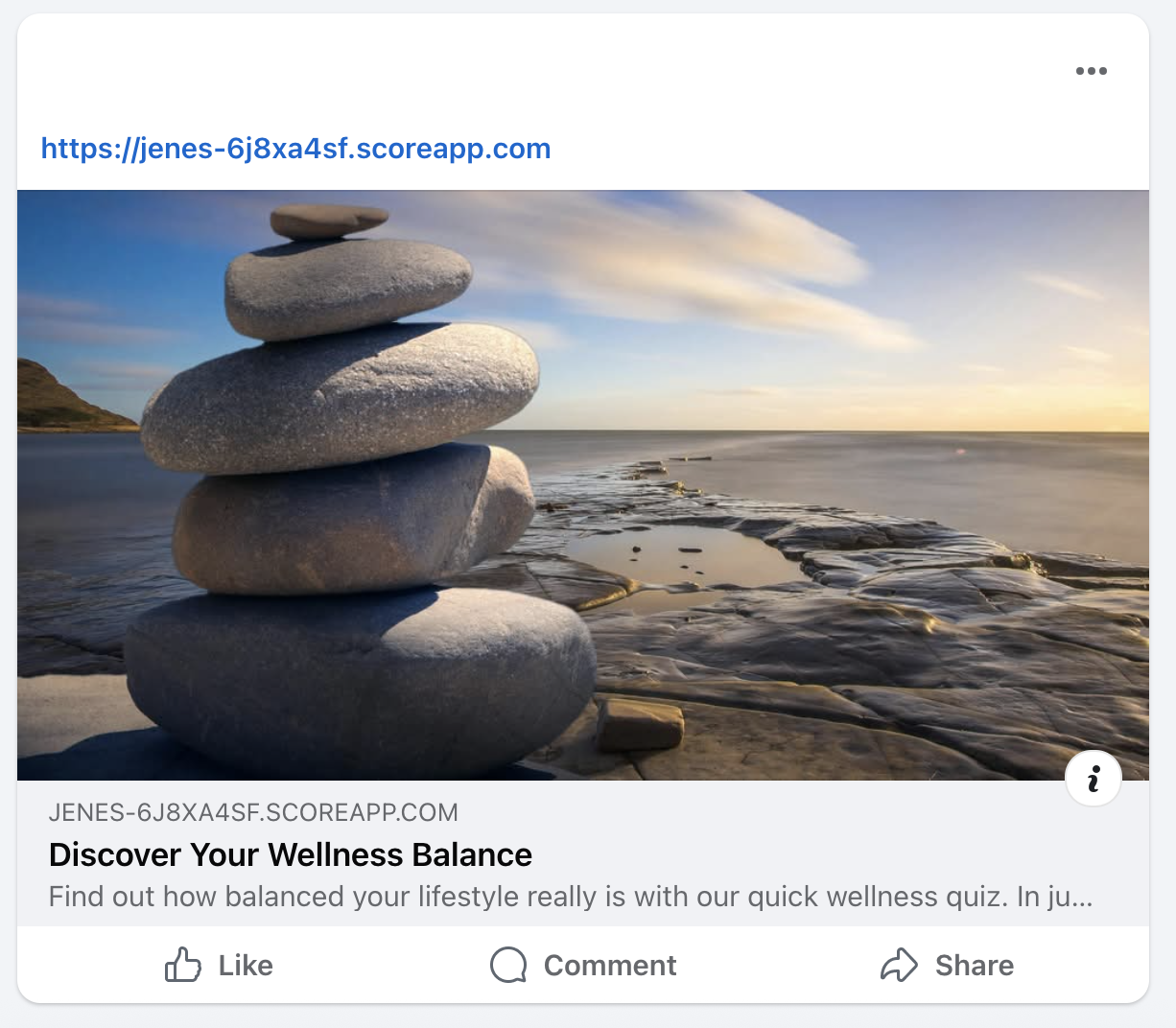 When you share a link to your scorecard on social media, such as on Facebook and LinkedIn, you can control the way it is displayed by adding an image, title and description. These are called og meta tags.
